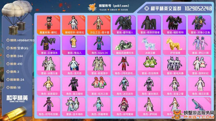 区服类型: 和平精英 /开局号 /苹果/QQ /默认区服